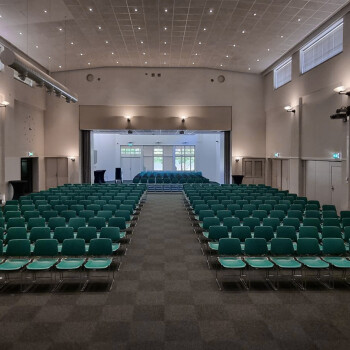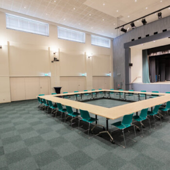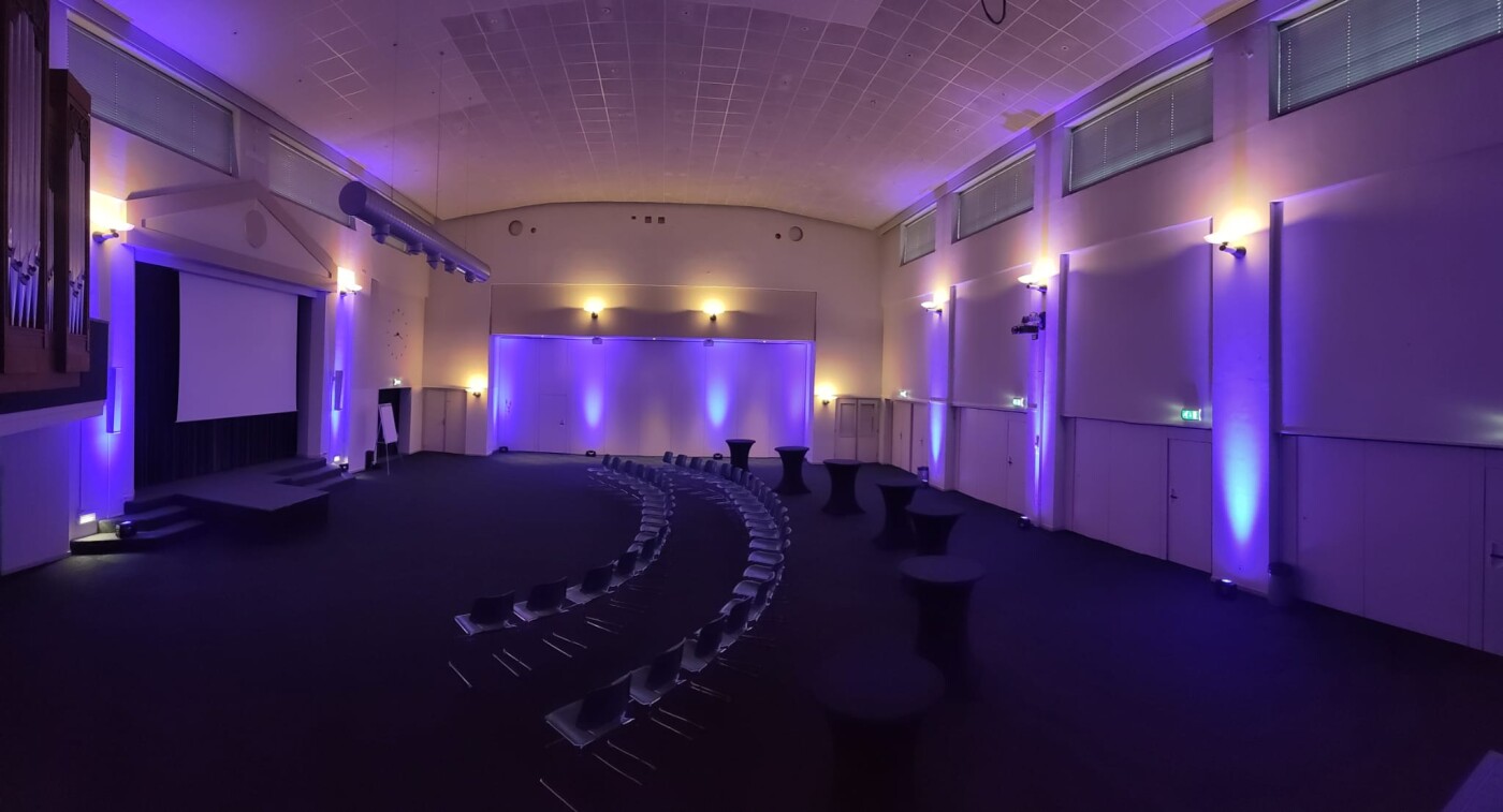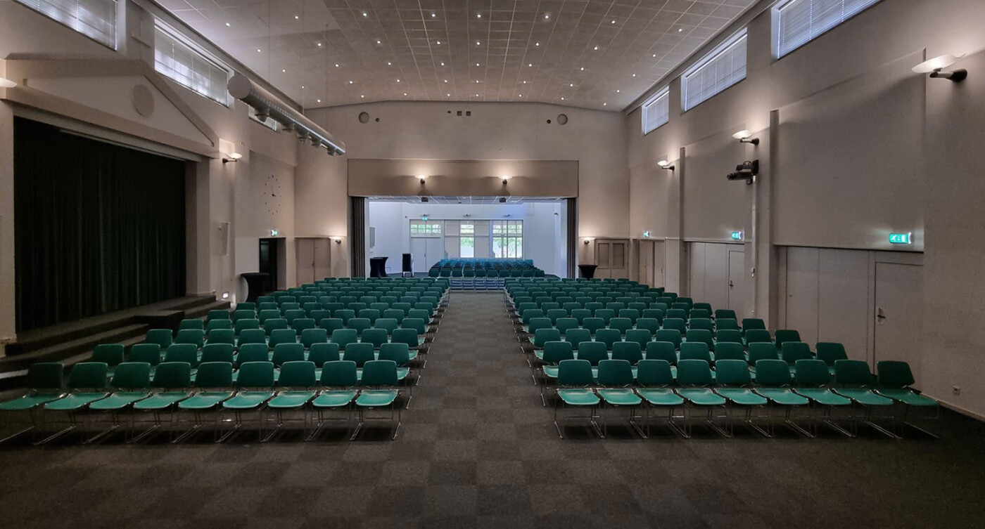De Grote Zaal is het prachtige middelpunt van Het Vierhuis. Er zijn diverse historische elementen bewaard gebleven, waaronder een prachtig nostalgisch orgel. De zaal is in diverse opstellingen te boeken en is redelijk te verduisteren. Ook kan er gekozen worden voor de inval van daglicht. Er is een beamer met scherm aanwezig en een professionele geluidsinstallatie. Er zijn 2 headsets en 2 handheld microfoons beschikbaar. De zaal is rolstoeltoegankelijk. De zaal is geschikt tussen de 50 en 250 personen.